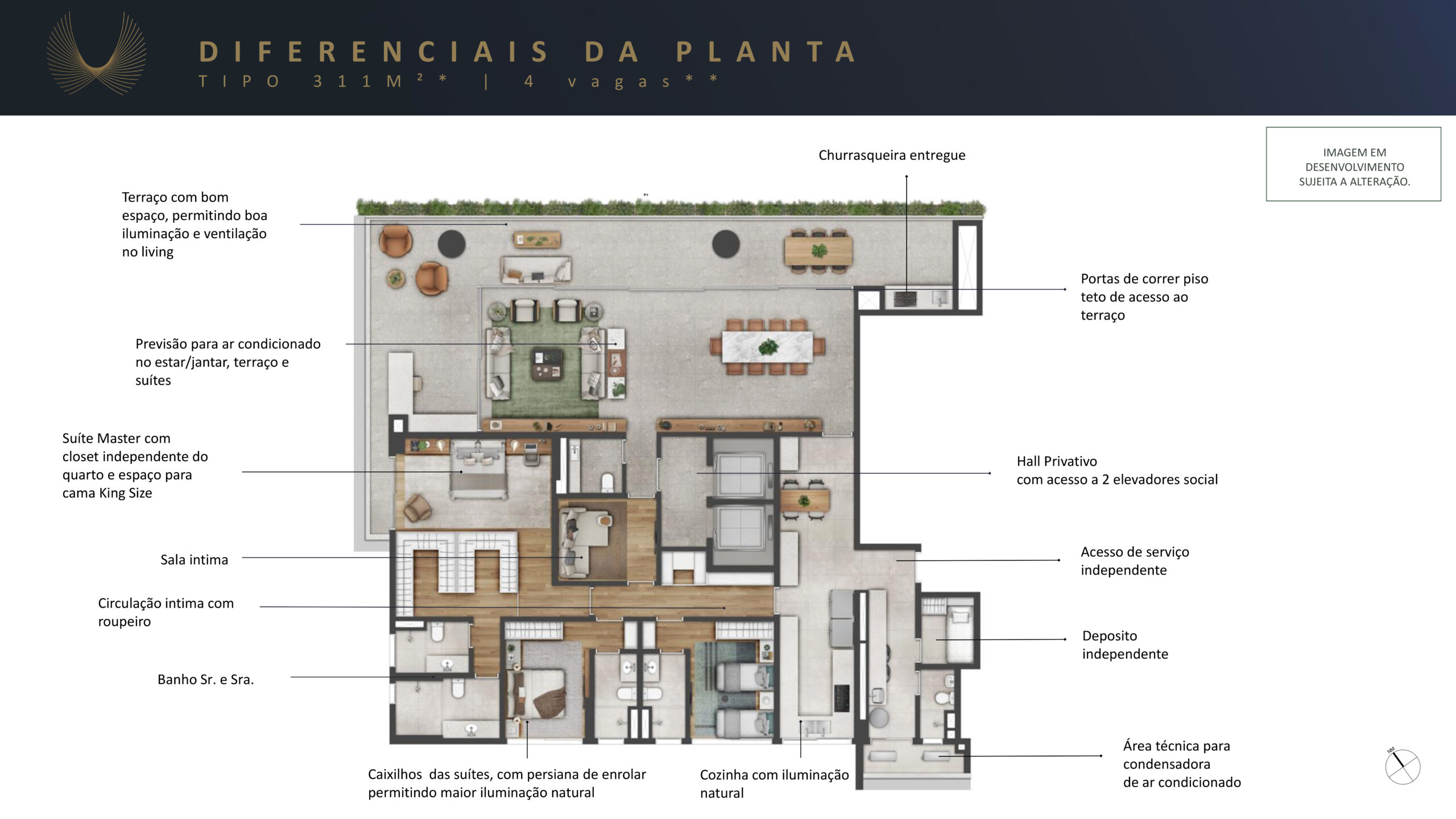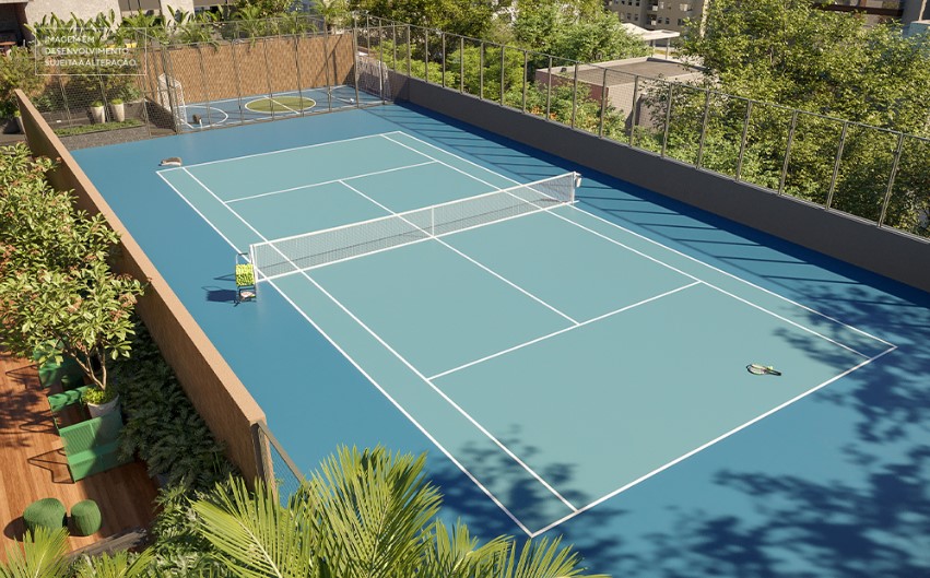 Quadra de tênis | Piscina coberta com raia de 25 metros | Spa | Sauna seca | Sala de massagem | Piscina adulto e infantil | Academia | Salão de festas com terraço | Quadra de jogos | Playground | Brinquedoteca | Espaço gourmet